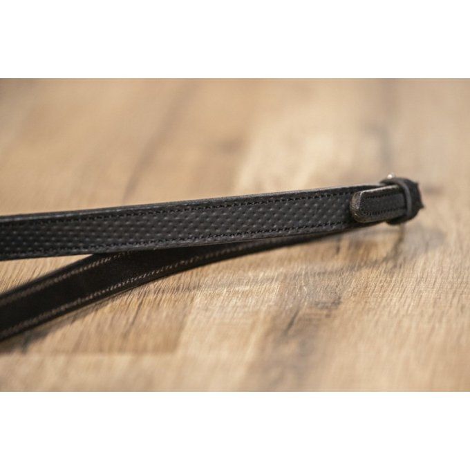 Le bridon Oxford est accompagné d'une paire de rênes en cuir perforé et caoutchouc avec picots antidérapants idéals pour une bonne prise en main.
