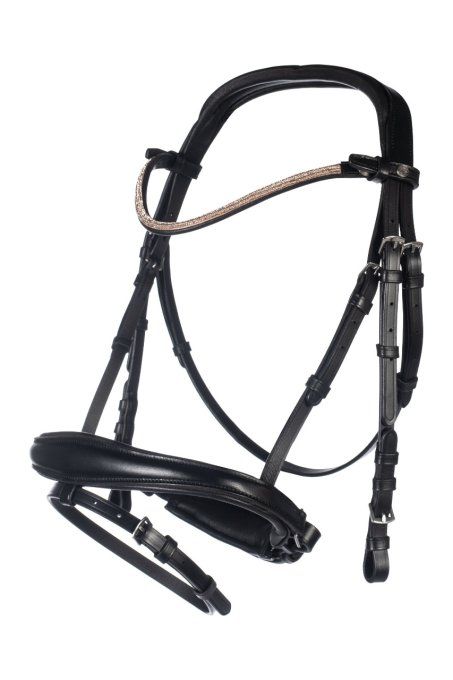 Bridon Black Strass avec frontal et muserolle bombée demi-rond et doublée.