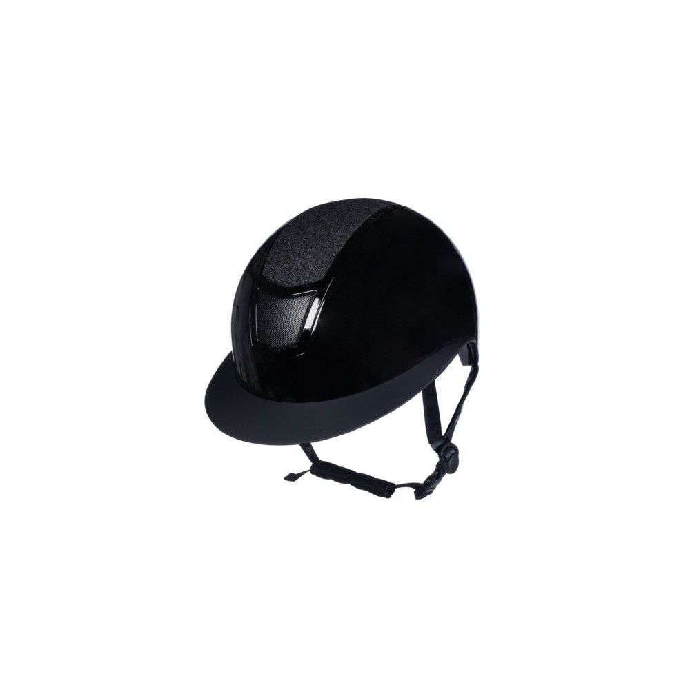 Remarquable de par son aspect coquet, ce casque séduit les cavalières particulièrement à cheval sur leur esthétique grâce à la présence de sa bande en strass sur la coque et sa large visière.