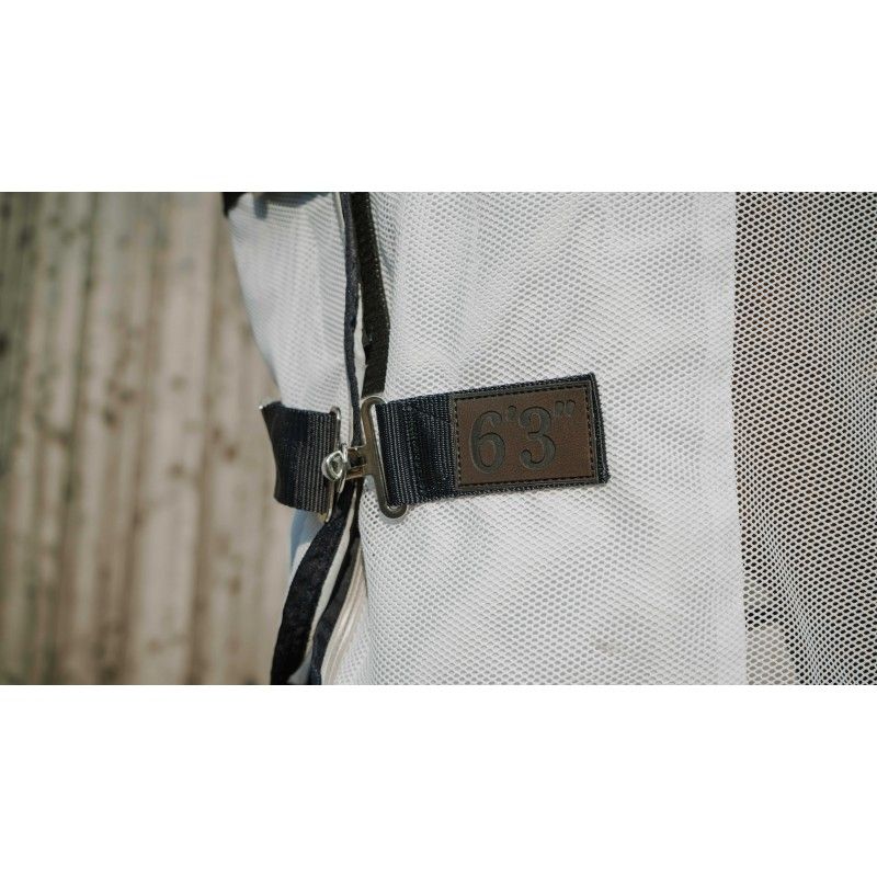 La majeure partie de la chemise est réalisée en mesh respirant, offrant une barrière efficace contre les insectes tout en assurant une circulation optimale de l’air. Ce tissu est doté d’une résistance UV 50, protégeant efficacement la peau et la robe du cheval contre les effets nocifs du soleil. Sur le haut du dos, une matière séchante gaufrée ultra légère favorise l’évacuation de l’humidité et accélère le séchage, limitant ainsi les sensations d’inconfort lors des fortes chaleurs.