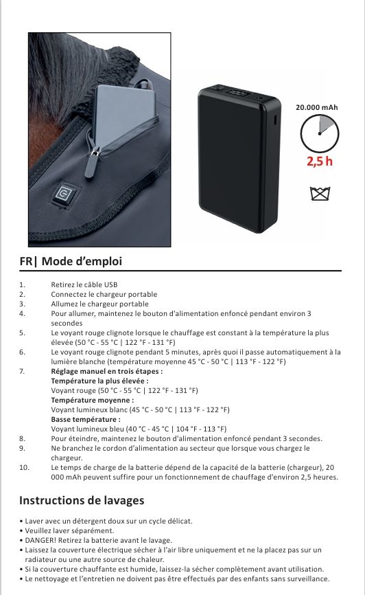 Autonomie Exceptionnelle : Livré avec une banque de puissance (powerbank) puissante de 20 000 mAh pour garantir de longues sessions de chaleur thérapeutique.