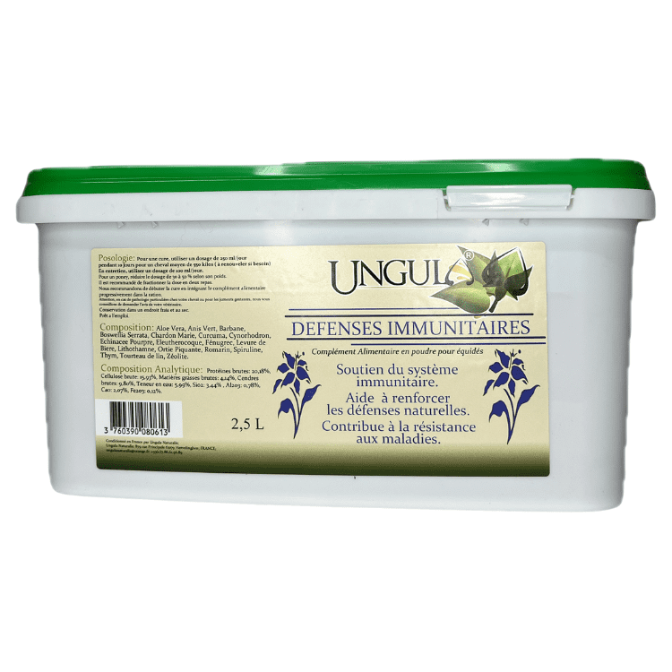 Ce complément Défenses Immunitaires est un booster naturel de forme et de vitalité, spécialement conçu pour renforcer les défenses naturelles du cheval tout au long de l'année.