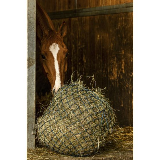Avec ses mailles de 5 cm de côté, le Filet à foin Hippo-Tonic Zari permet aussi une distribution quotidienne du foin au box tout en limitant le gaspillage et en assurant une consommation régulière par votre cheval.