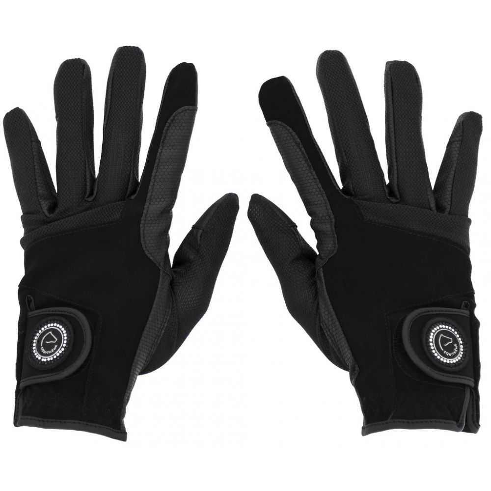 Côté look, un marquage avec un badge à strass sur le velcro de serrage apporte une touche élégante et sophistiquée, idéale pour les cavalières recherchant un look chic sans compromettre la performance.