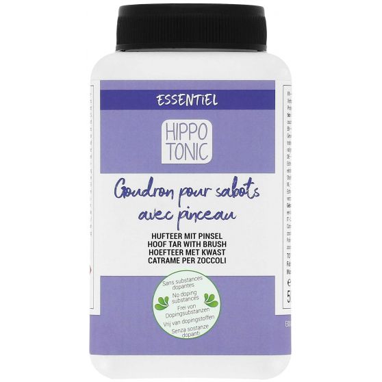 Idéal par temps humide, le Goudron pour sabots Hippo-Tonic avec pinceau assure la protection et les soins du sabot.