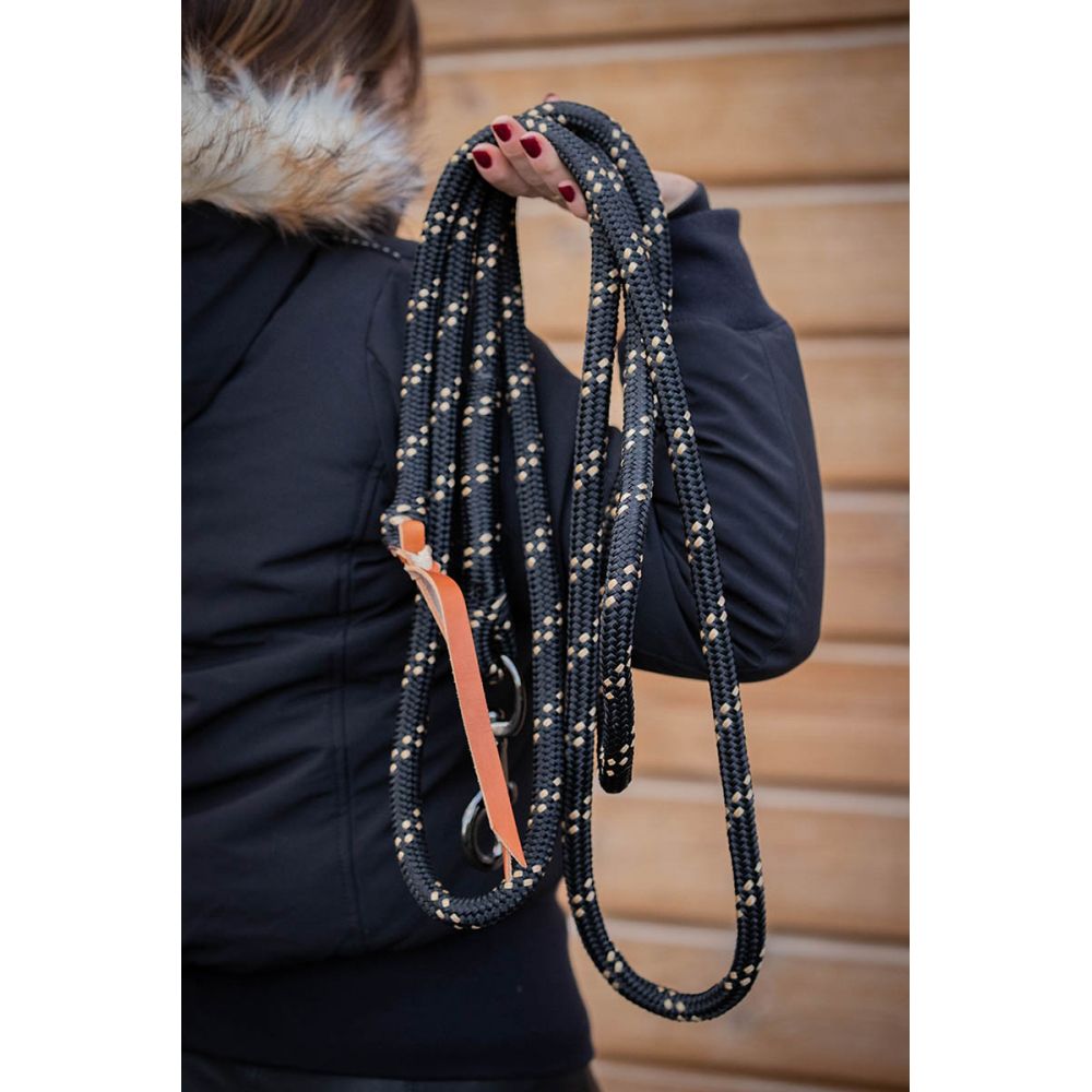 En corde noire et crème, la Longe éthologique Pénélope est parfaitement assortie au Licol éthologique Pénélope américain.