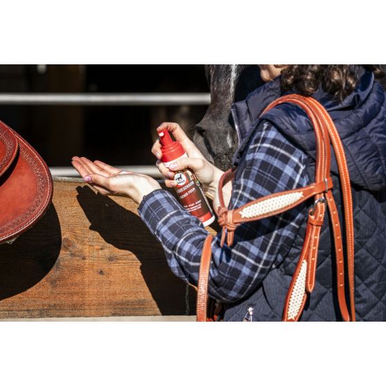Nourrissante et crémeuse, la Mousse pour cuir Leovet permet de nettoyer, graisser et protéger le cuir.
