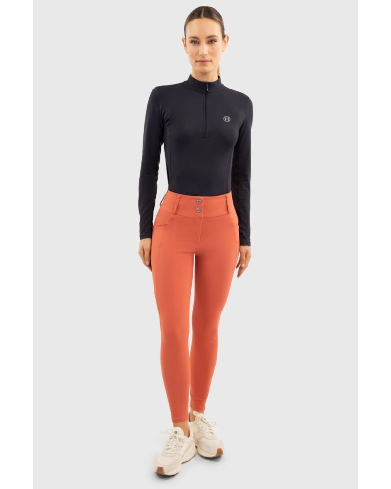 Pensé pour le confort en selle, ce pantalon est doté d’une ceinture haute qui garantit un maintien optimal sans comprimer, même lors des séances prolongées 🐴. Le grip en silicone aux genoux offre une adhérence renforcée, améliorant la stabilité et la précision des aides, pour une monte plus sûre et plus confortable.