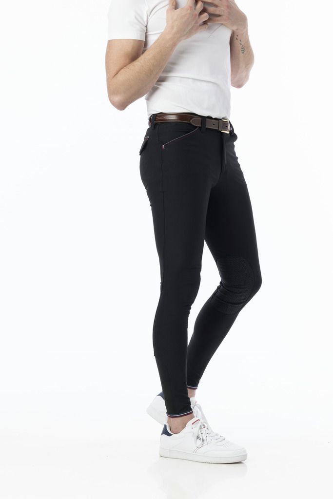 Un pantalon en tissu technique assorti à la collection French Touch.