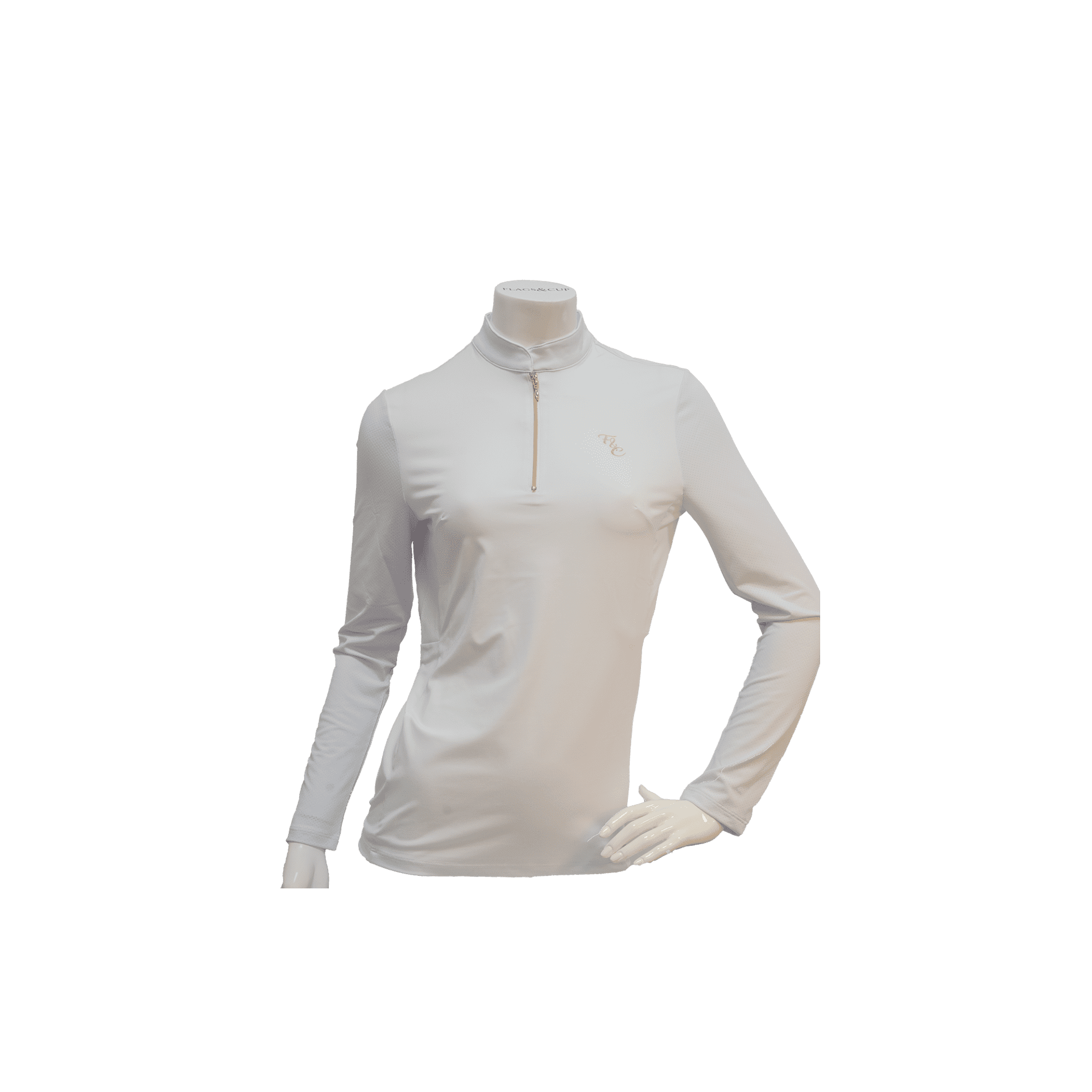 Le polo de concours Andria manches longues de Flags&Cup associe technicité et élégance pour accompagner les cavalières en compétition.