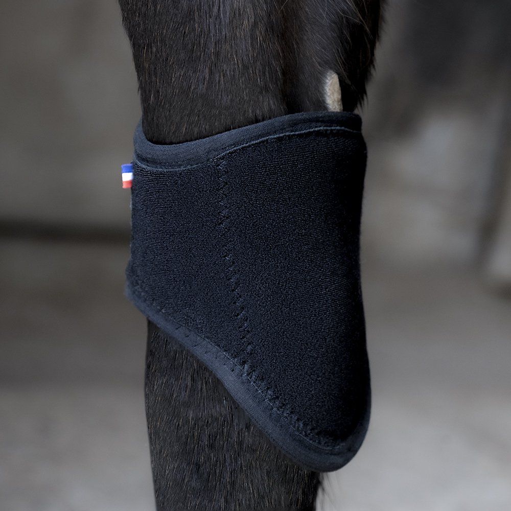 La grande souplesse du néoprène utilisé dans la conception du protège-genoux ARKANA est l’un de ses principaux atouts. Elle permet au produit de suivre les mouvements naturels du cheval sans restreindre sa liberté d’action.