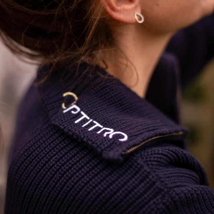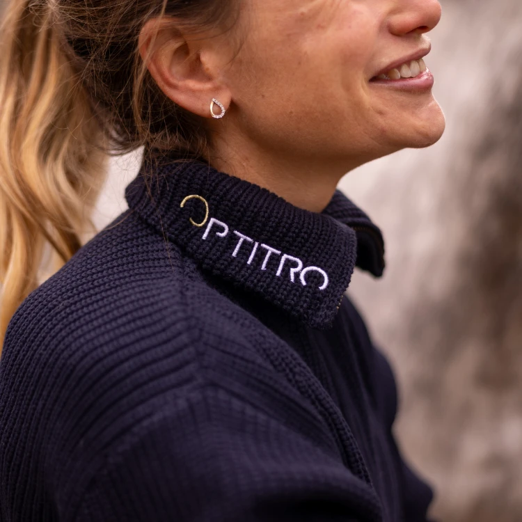 Vous retrouverez le logo Optitro brodé sur le col côté droit.
