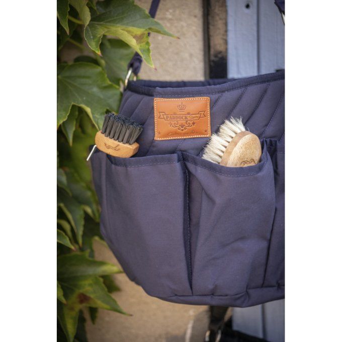 Produits de soin, brosses, friandises et même protections de travail trouveront leur place dans ce sac de pansage multipoches.
