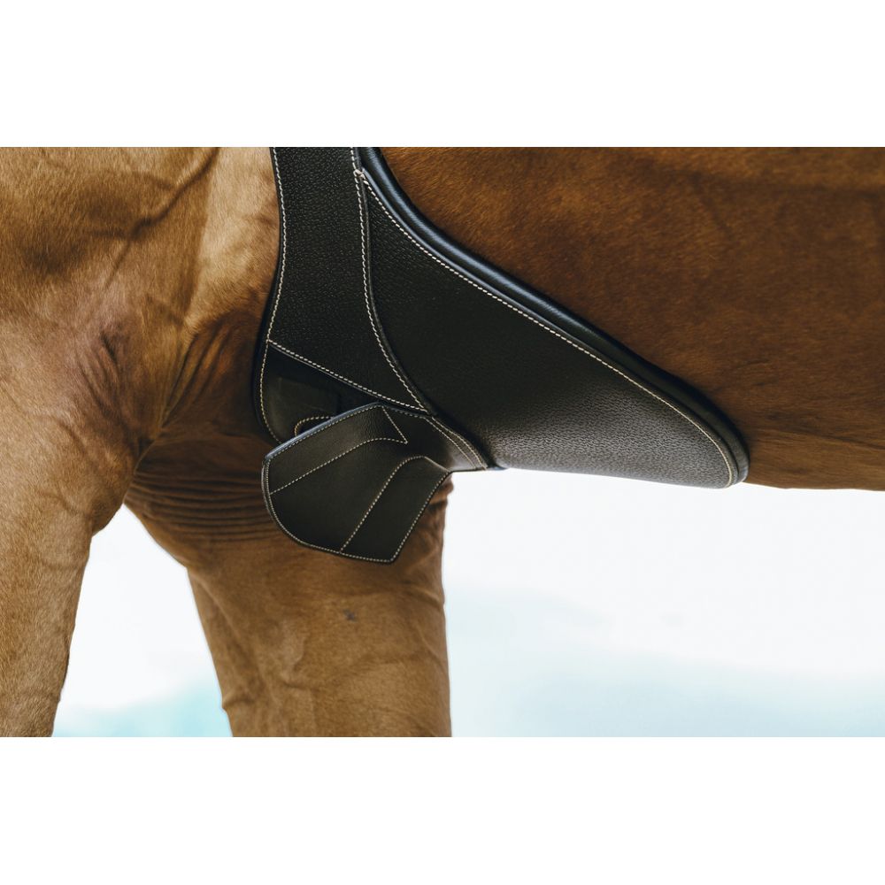 À chaque extrémité, des élastiques à triple épaisseur permettent un sanglage facile et une meilleure absorption des mouvements du cheval tout en garantissant une grande flexibilité.