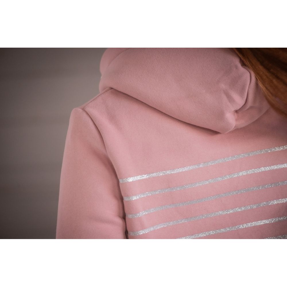 Son design apporte une note joyeuse et élégante : de fines rayures glitter argentées illuminent le sweat, tandis que le logo Pénélope en bouclette placé sur le devant signe le Sweat Pénélope Ikona avec style.