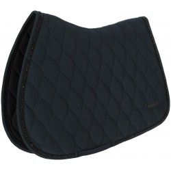 L’intérieur du tapis est doté d’un revêtement gaufré, favorisant la respirabilité et une meilleure évacuation de l’humidité. Les passages de sangle assurent un positionnement précis et évitent les mouvements indésirables sous la selle. Pour un ensemble harmonieux, ce tapis peut être parfaitement assorti au bonnet de cheval Pearl.