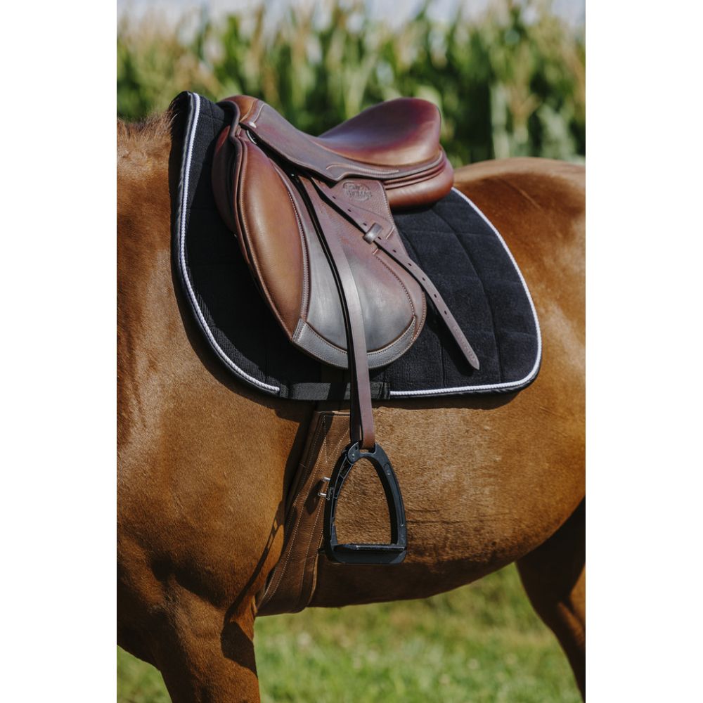Disponible en plusieurs couleurs, ce tapis s'adapte facilement à tous les ensembles et styles équestres ! Son galon en corde tressé blanc vient rehausser le look du tapis, pour un résultat à la fois sobre et élégant.
