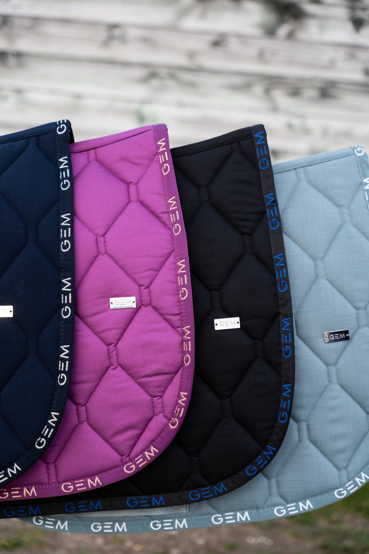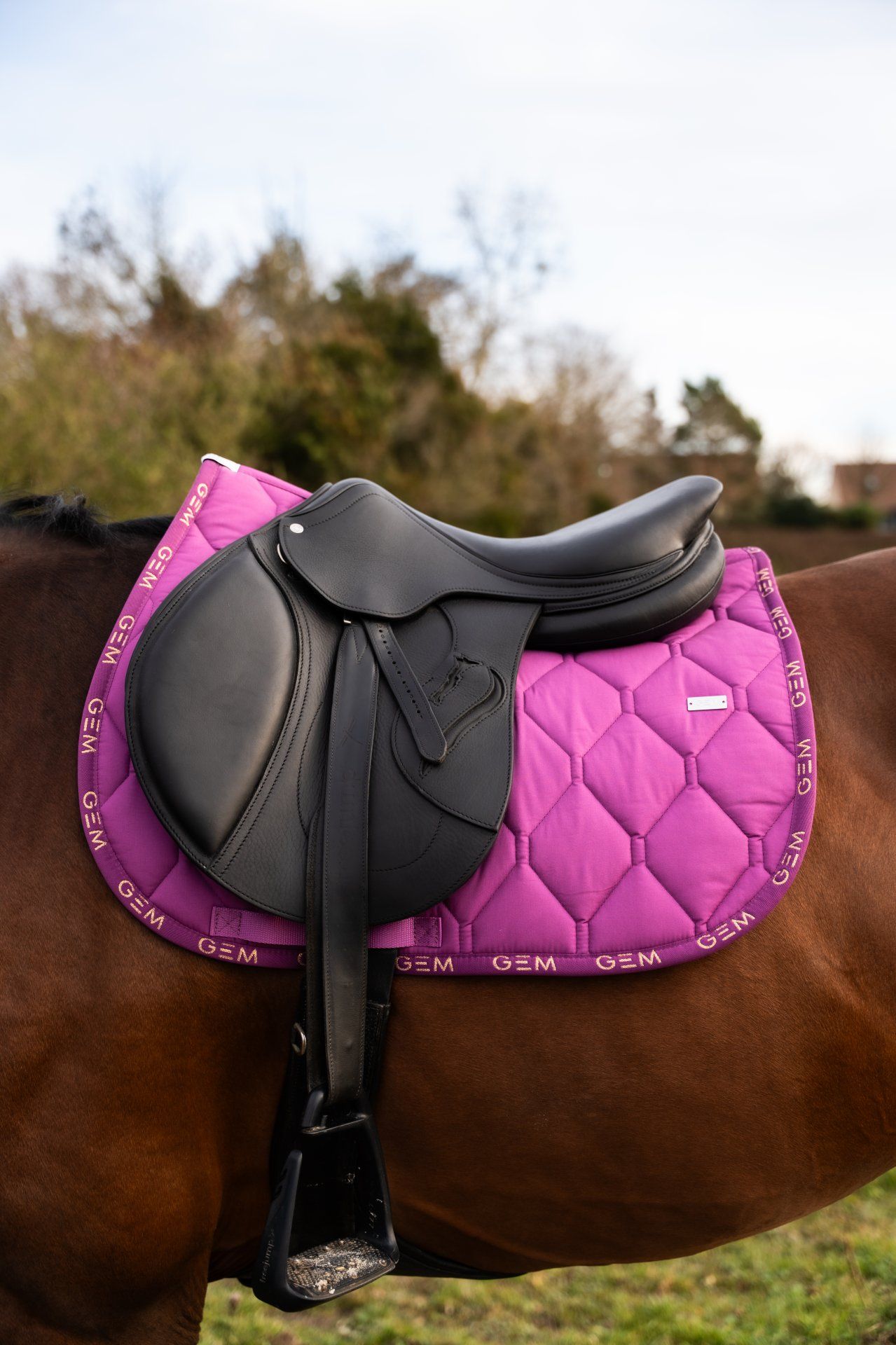 Découvrez le tapis GEM Love Obstacle, le best-seller iconique de GEM, maintenant disponible en Violet. Son bord en coton brodé de logos GEM blancs lui apporte un style sportif et élégant, parfait pour vos séances de saut d’obstacles (CSO).